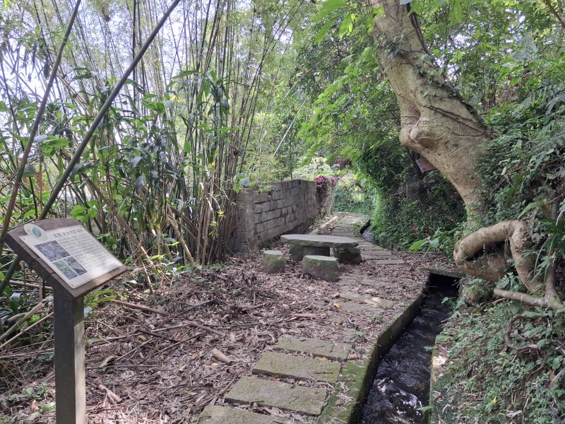 農路出口/指示牌/接續菁礐古圳/另一頭則是水源地,也就是菁礐溪源頭