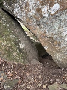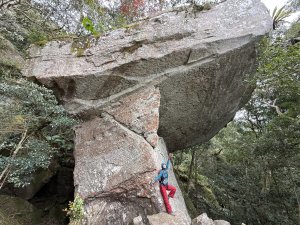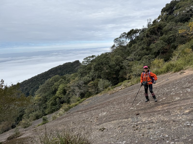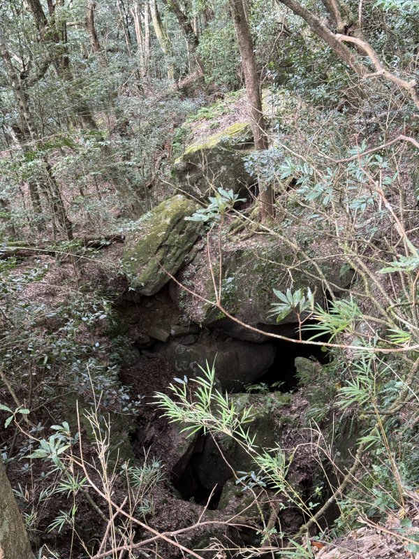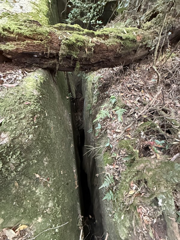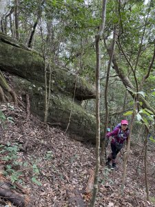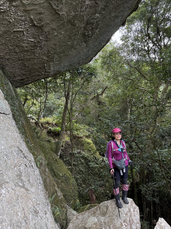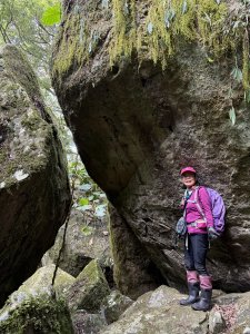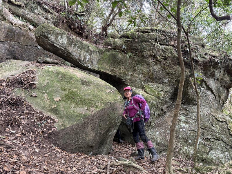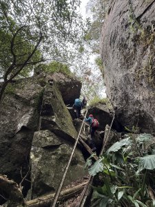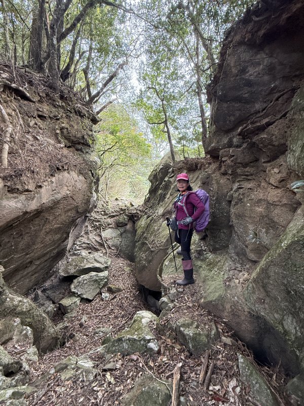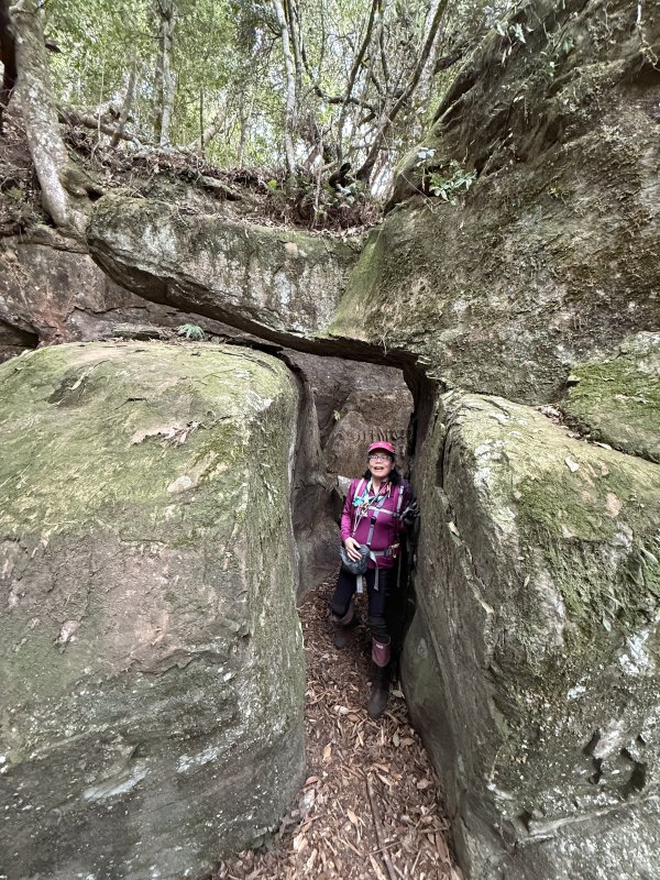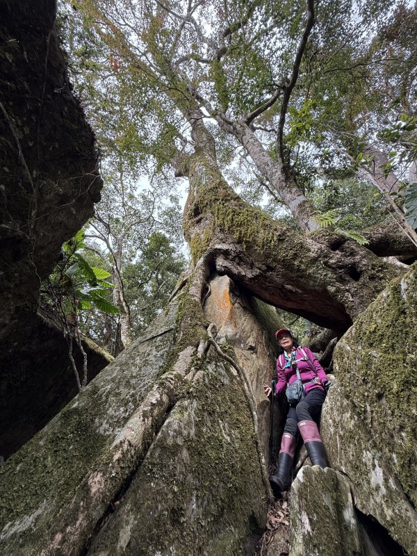 過了忘雨岩進入困難地形 往上爬~鑽過樹洞