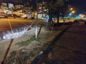 (恆春)船帆石(靠近台26線38K里程牌,旁邊是公車站中船帆石站牌。基石在人行道旁的花圃上,只露出頂部)