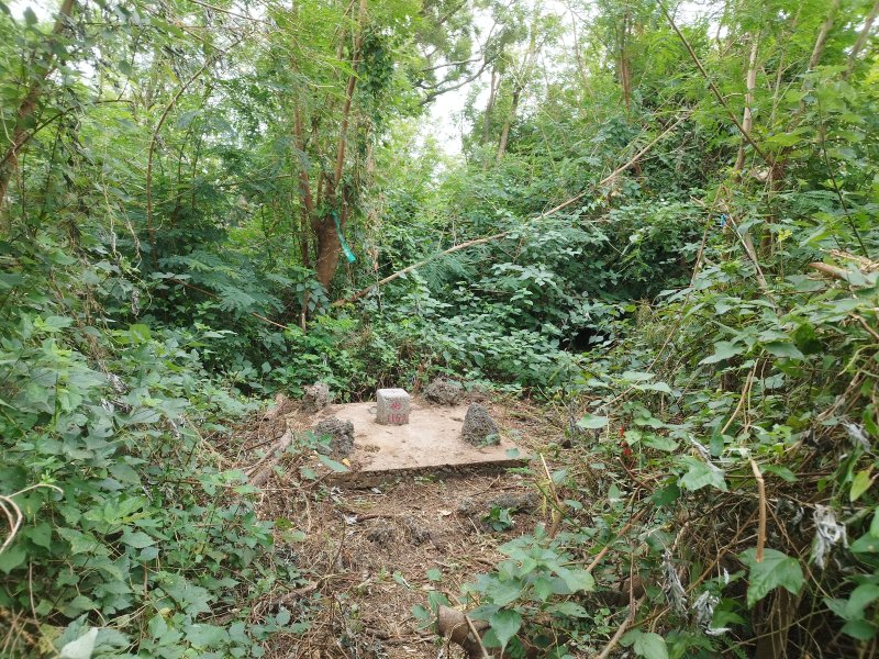 恆春紅牛~16(回到三岔路,往大山母山方向走一點會看到這個寫著二戰日本兵營區,現在有可能被淹沒在雜林裡,已經完全看不出任何痕跡)
