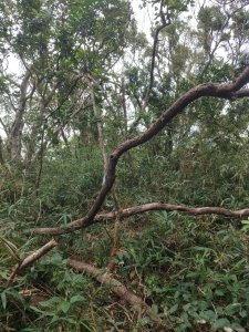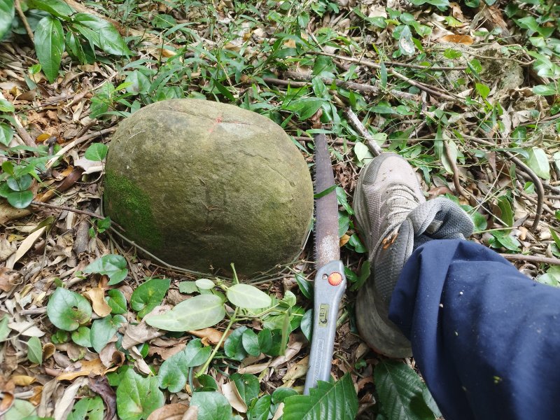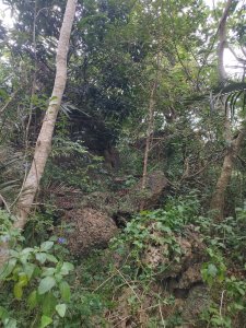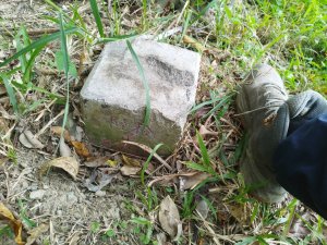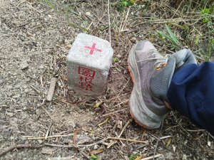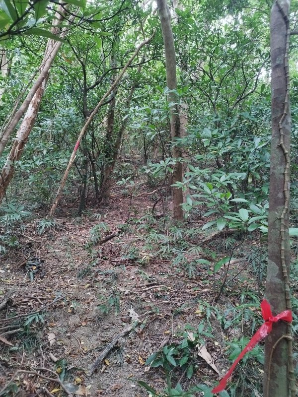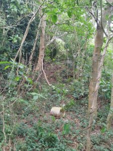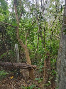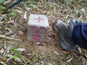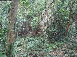 (滿州)大崎山~3(沿著保線路直接到基石旁,注意樹上的路條,基石在路左的廢地上露土不高)