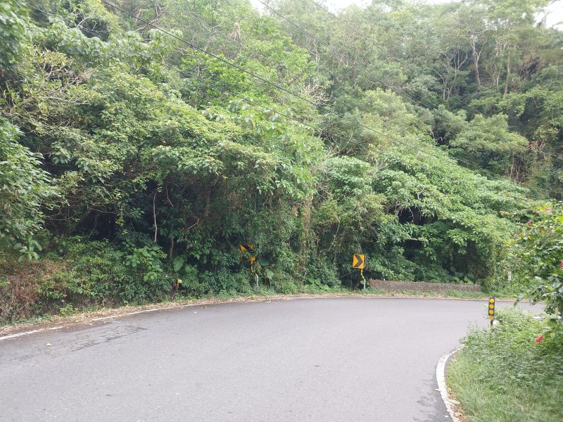 (滿州)馬龍望山東~1(從右轉交通標誌的後方進入,旁邊的道路水泥護欄有噴上三角點指標。這座山在魯地圖上是沒有畫紅虛線的,山徑全靠同好最近硬砍出來)