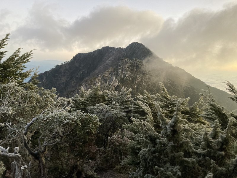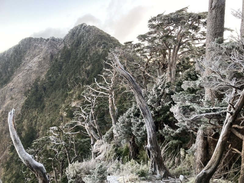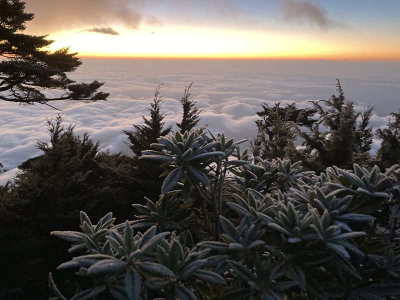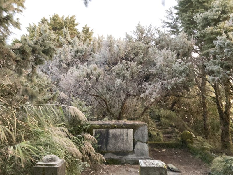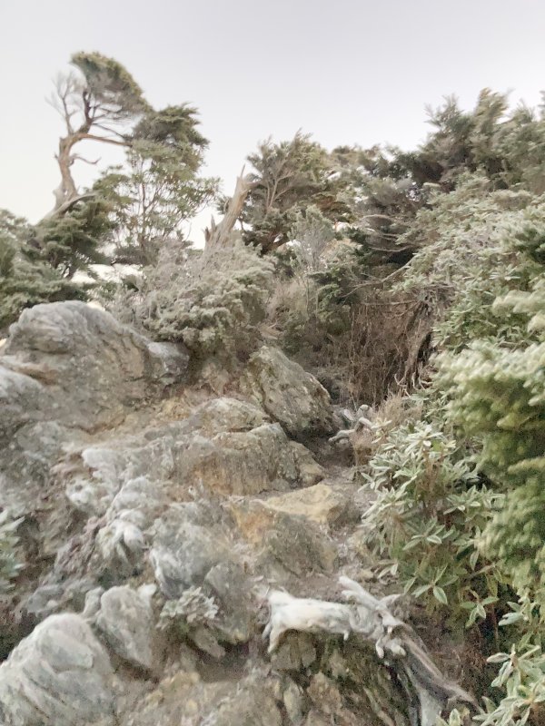 上稜線後發現所見之處都是薄薄的冰跟霜,地面像在踩冰塊一樣