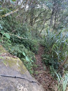 出水坑步道終點對面右下方為往篤鼻山之產業步道