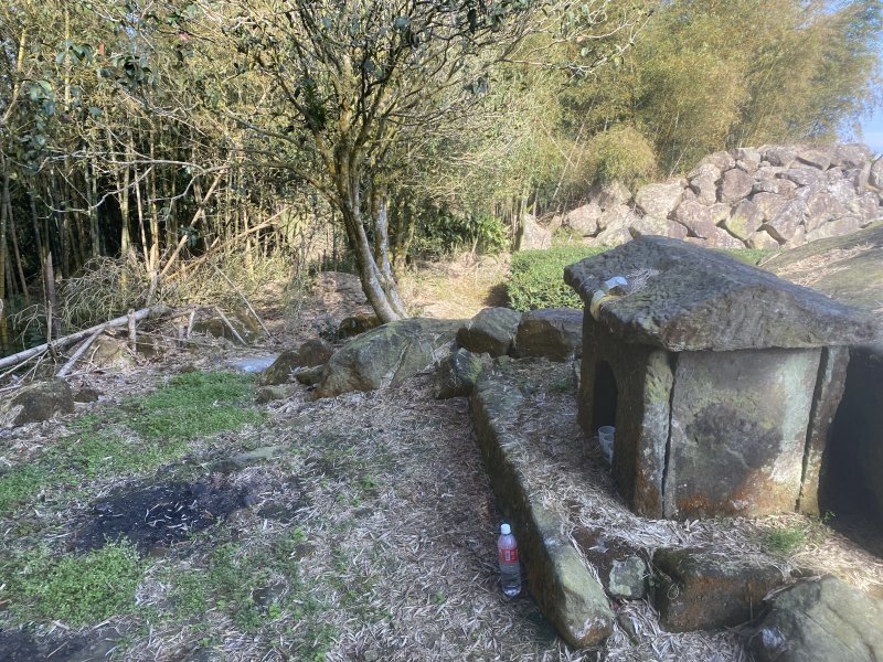 出水坑步道(為位於竹崎鄉金獅村出水坑聚落,為昔日聚落對外聯絡的「汗路古道」)入口在166縣道64.5K處,陡升300公尺的石階步道來到第一個轉折處,有1小土地公廟。