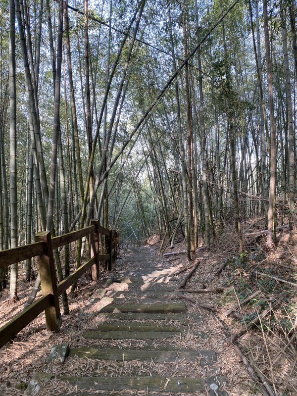 陽光撒在竹林步道上