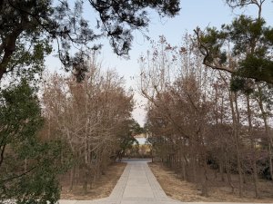 漢影雲根登山口,即為標註 1 號,有台灣好行站牌。二排樹木很有秋天的風情。