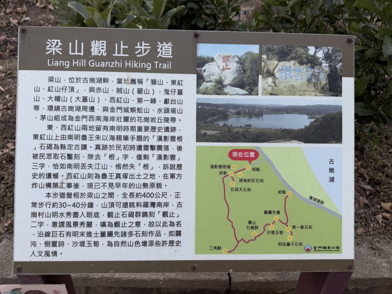 觀止岔路往右景觀台 (觀止石刻 風景不錯,可以看整個古崗湖)