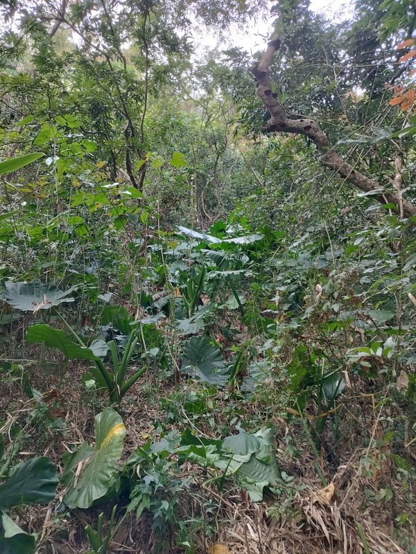 (左鎮)竹子鳥山~3(到處都是肥沃的姑婆芋,不好綁路條只好砍來當作路標)
