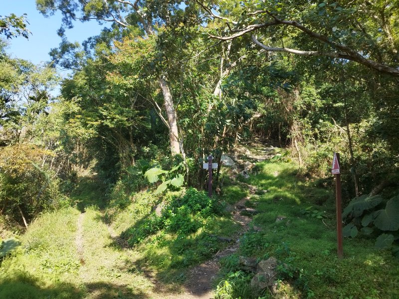 西阿里關山南化端~20(西阿里關山岔路,前方有告示牌的那條是從甲仙東側登山口上來的路徑)