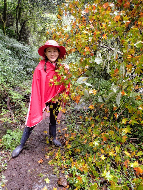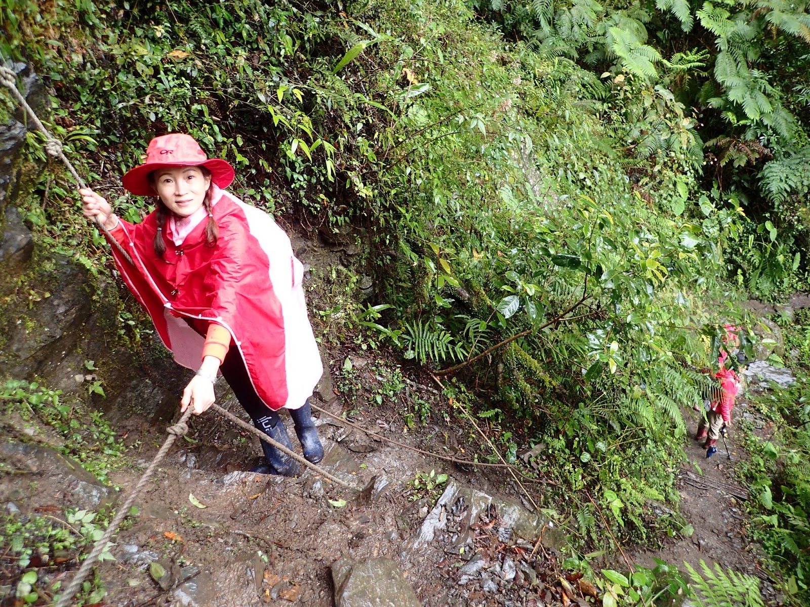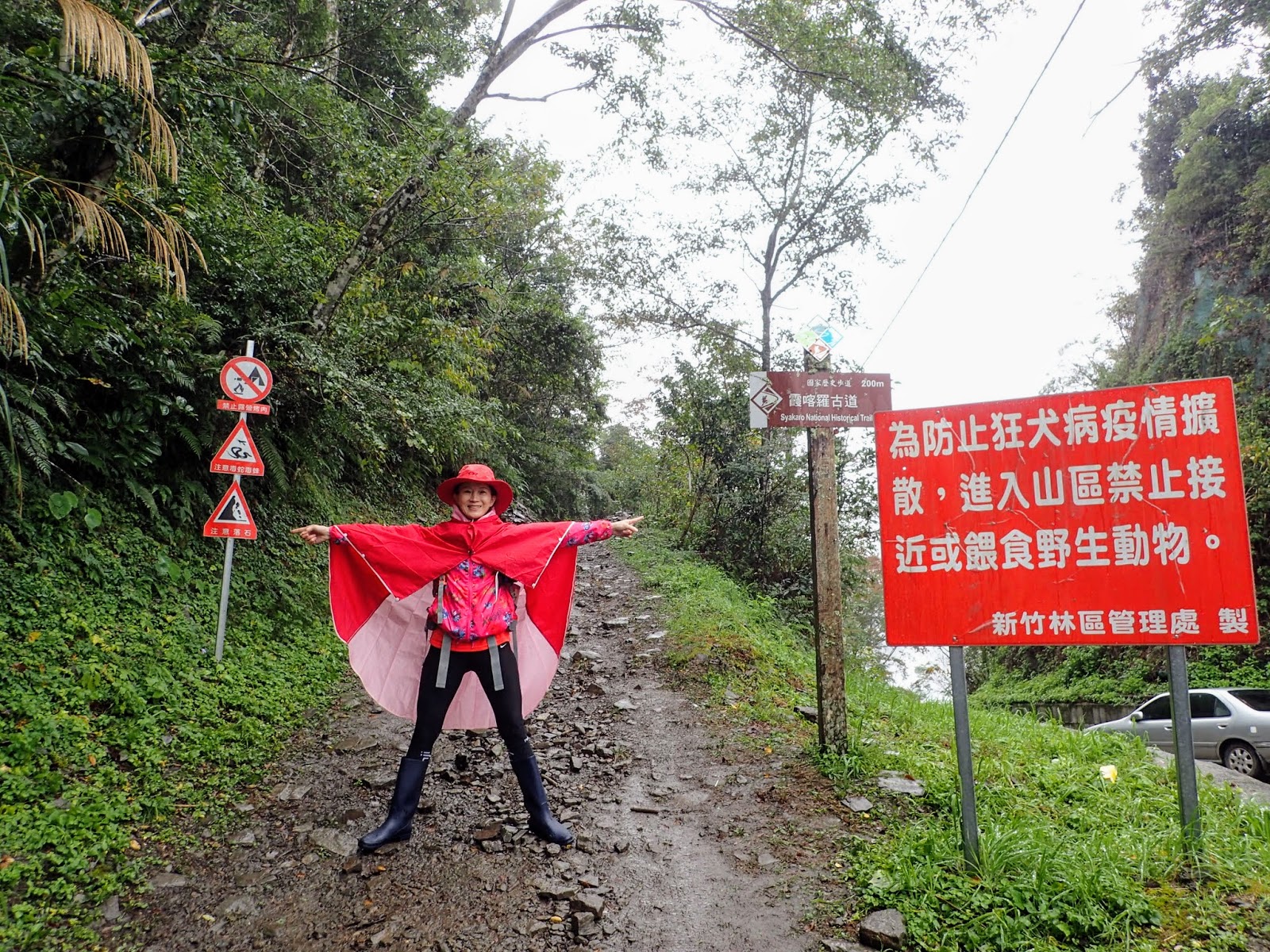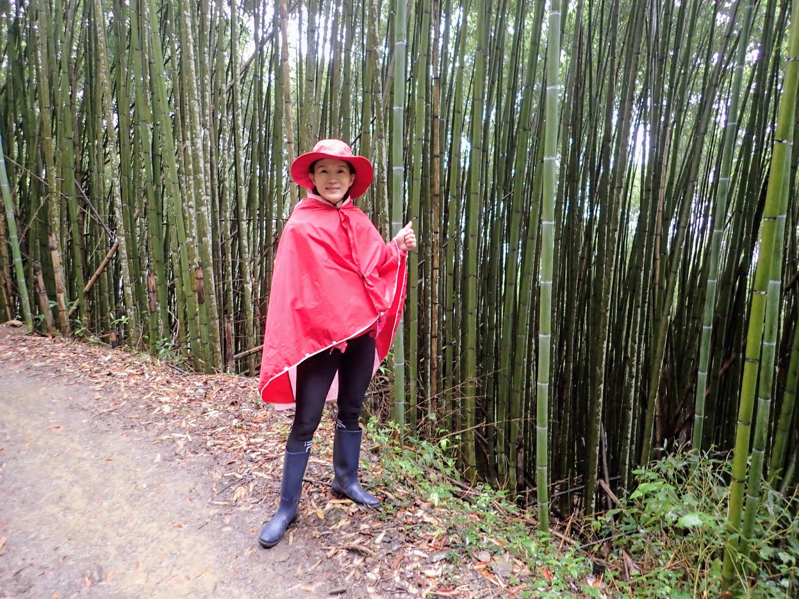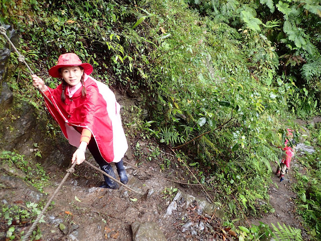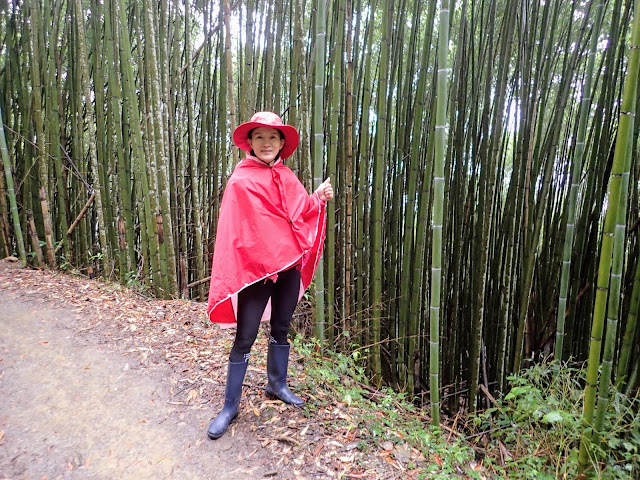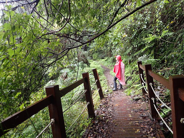 今天有美麗的琴妹同行, 琴妹身上的雨衣經過她巧思改良, 好穿又美觀, 人美手巧, 妳看看, 還是最流行的不對稱剪裁