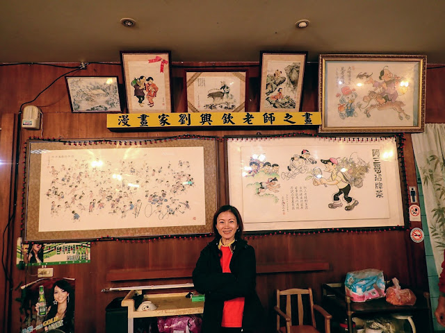 5:50來到阿三哥餐廳用餐, 客家菜脆皮油雞, 薑絲大腸, 梅干扣肉, 嫩豆腐, 蒸魚, 炸溪蝦...道道上菜就吃光光, 小李哥還每桌問問有誰要喝啤酒自己拿, 呵呵, 都快冷死了還是喝杯熱茶最實在