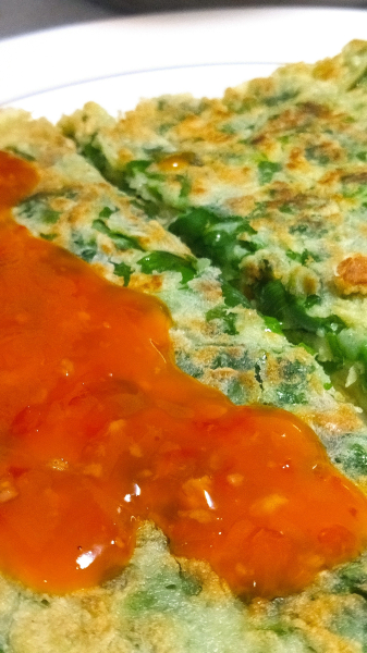 熱鍋熱油 放入山蘇麵糊 煎至兩面金黃