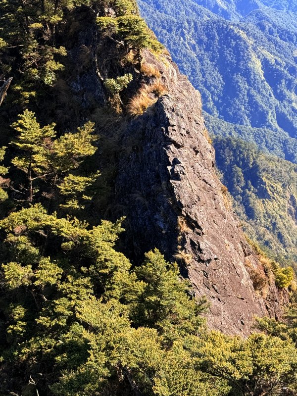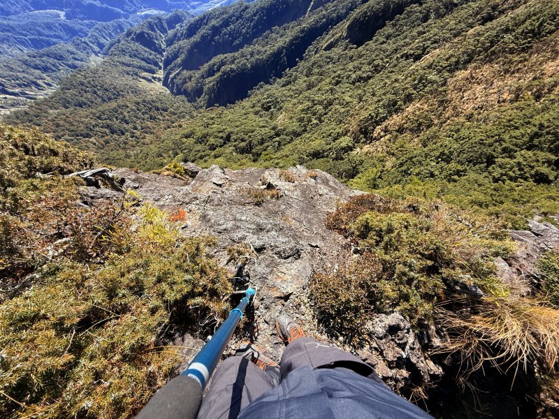 這裡很多這種要一直垂直下切的路線,而且路況非常的差,要自己現場判斷,但要小心劍竹招呼臉上、刺柏偷襲下盤以及樹洞、腐土在腳邊,所以建議有較多探勘經驗後再結伴前往較好