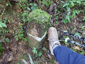 來坪溪打鐵啊~15(過山頂後持續下坡,經過一根保安林界柱)