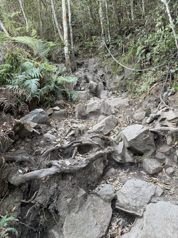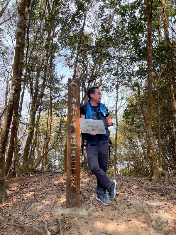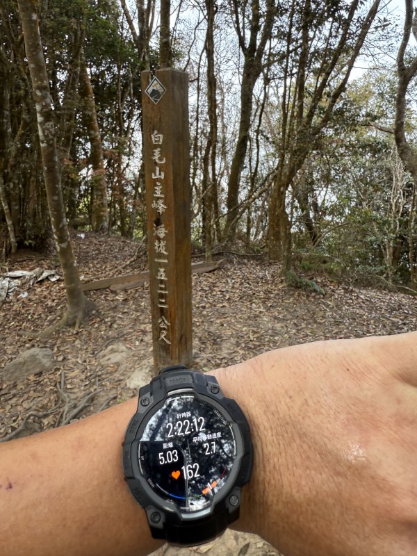 谷關七雄-白毛山+O型縱走 賢賢沒事 2025-04-06 發表 1,187 次點閱 6 次拍手 拍個手吧 收藏 檢舉 分享 分享至 Facebook LINE 一日行程 出發日期 2025/03/29 回程日期 2025/03/29 相關路線 白毛山步道 相關山岳 白毛山 本文為網友的心得,以下內容不代表健行筆記立場。 Day 1 2025/03/29 08:06 從白鹿吊橋開始 08:36 開始為時50分鐘的無聊上坡 08:51 開始起登後沒有太困難的路線,基本上就是緩緩上坡 10:08 中後段開始上坡,但不會太困難 10:23 視野很好,看到頭尖尖的山 10:26 很多爬山部落客必拍的上坡階梯路段 10:28 抵達三角點,約2小時22分達陣 三角點就是要合照吧 11:16 往1450峰準備開始下山的O型縱走 11:21 1450應該是海拔高度? 11:26 漸漸起霧,一路陡下但是非常美 11:50 經過的美麗蕨類 12:32 山林的美 12:59 O型縱走路線雖長,但一路走下去都很美 附上成績