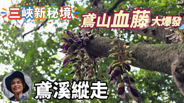 心情:你去過飛鳳山、溪洲山、王功坑山,但你見過號稱幸運花的血藤花嗎?告訴你一個好消息,我發現一處血藤秘境,位於三峽老街附近的鳶山,有一處血藤秘林,這裏的血藤又多又大棵,一串串猶如紫紅風鈴掛在樹上,十分好看,離馬路不到1公里,步行30分鐘即可抵達,要去要快,如果你跟我一樣喜歡爬山,鳶溪縱走推薦給你,直接從三峽老街走到大溪老街,途經網美最愛的鳶山彩壁、還有視野遼闊的五十分山,賞花觀景吃美食,一次完成,Perfect!喜歡就快點出發吧!Let’s go.