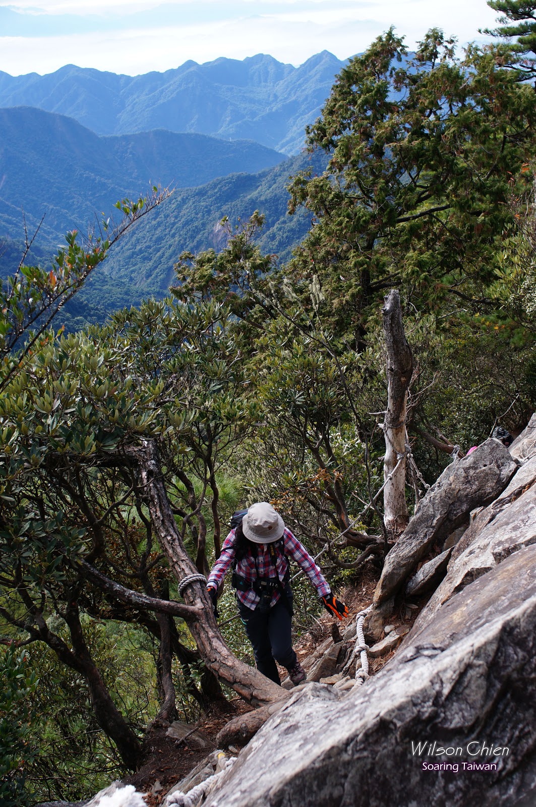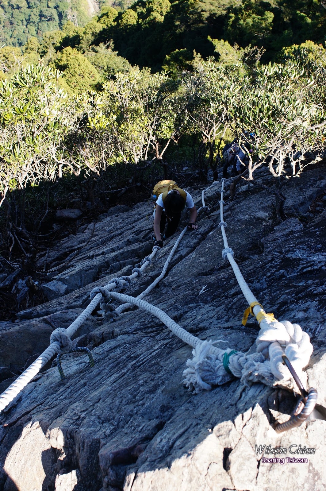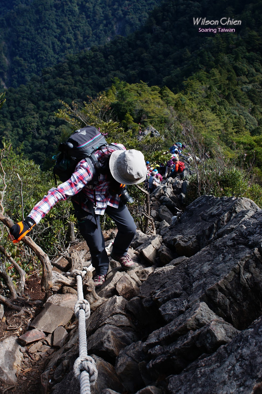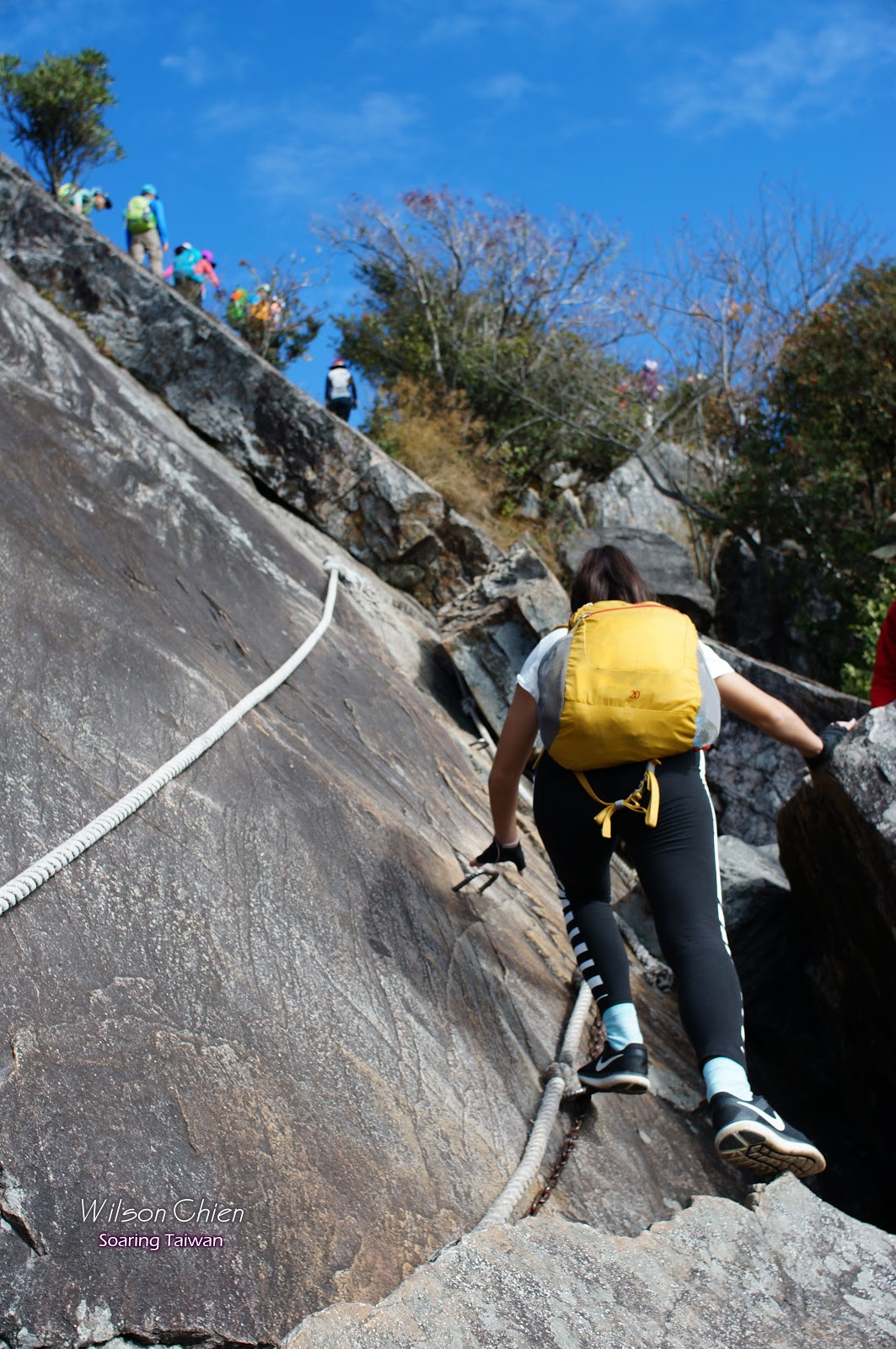 驚險的攀岩加上季節限定的台灣紅榨楓與優質的松針地毯山徑和山頂的景觀視野,