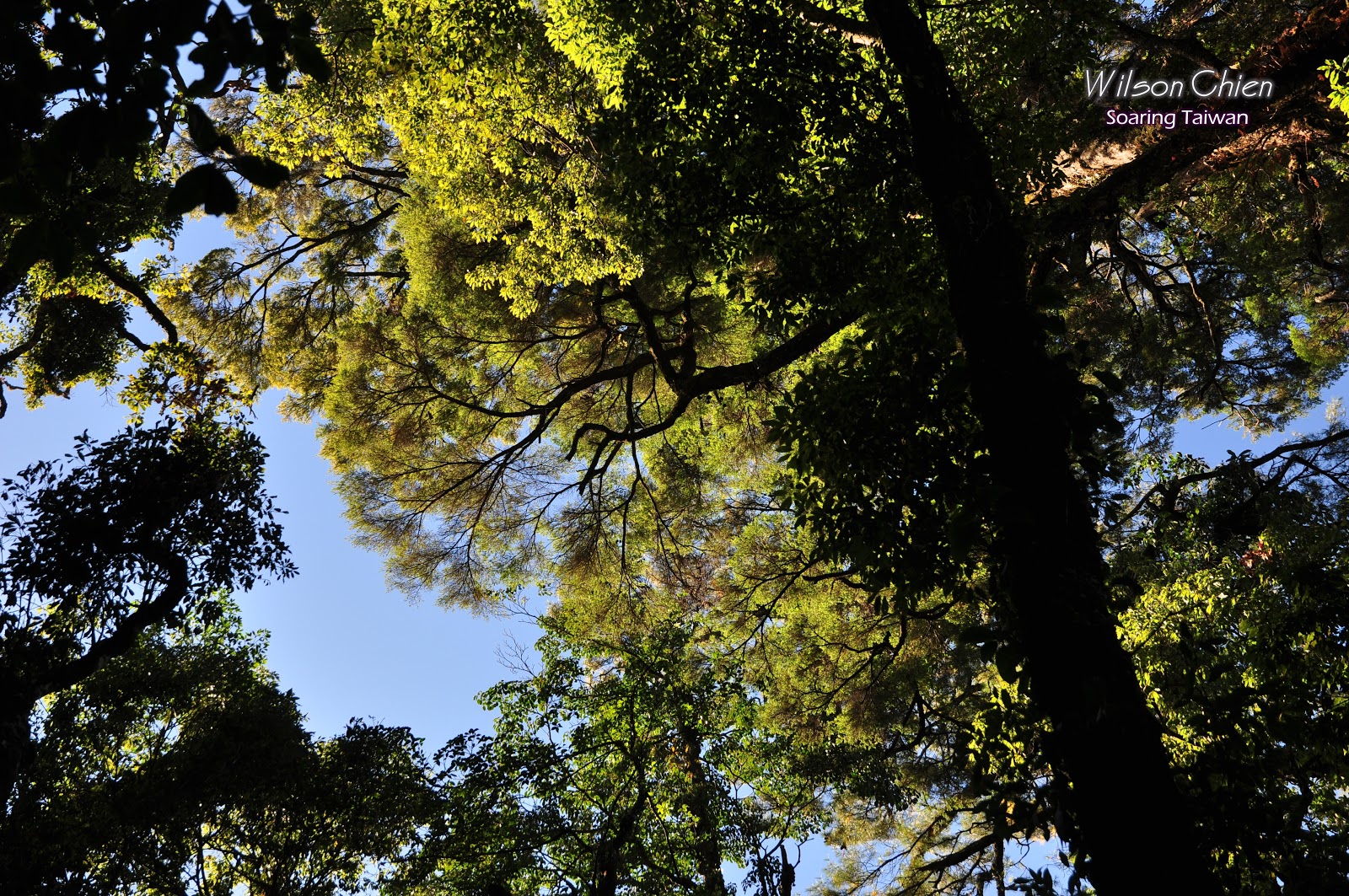繼續往稍來山前進, 林子裏曬不到太陽有些寒冷風衣穿上
