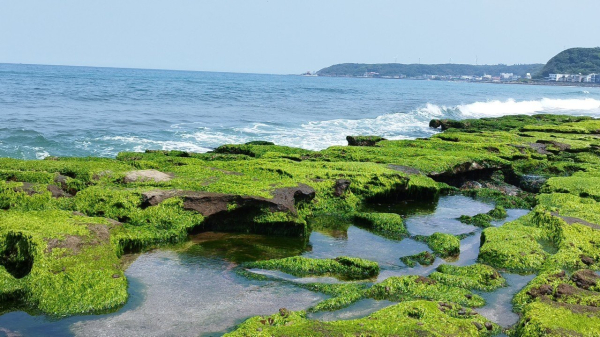 位於新北石門區老梅里,因大片海藻附著於石槽上,放眼望去,綠意盎然,故而得名『老梅綠石槽』。