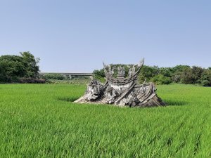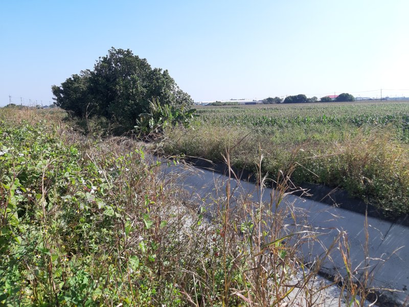 (六腳)北圳(田中的大樹小廟。座標23.499880,120.283004)