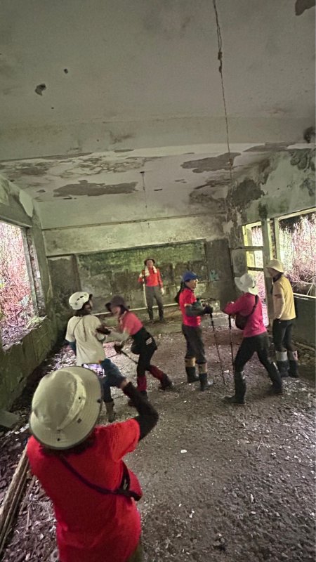 第二站去土場國小(1978廢校)也被指定為歷史建築,羅東森林鐵路之土場到鳩之澤屬於山地段,還有三個隧道,路線離河川高度約20-30米,沿線多已坍方所以多走河床