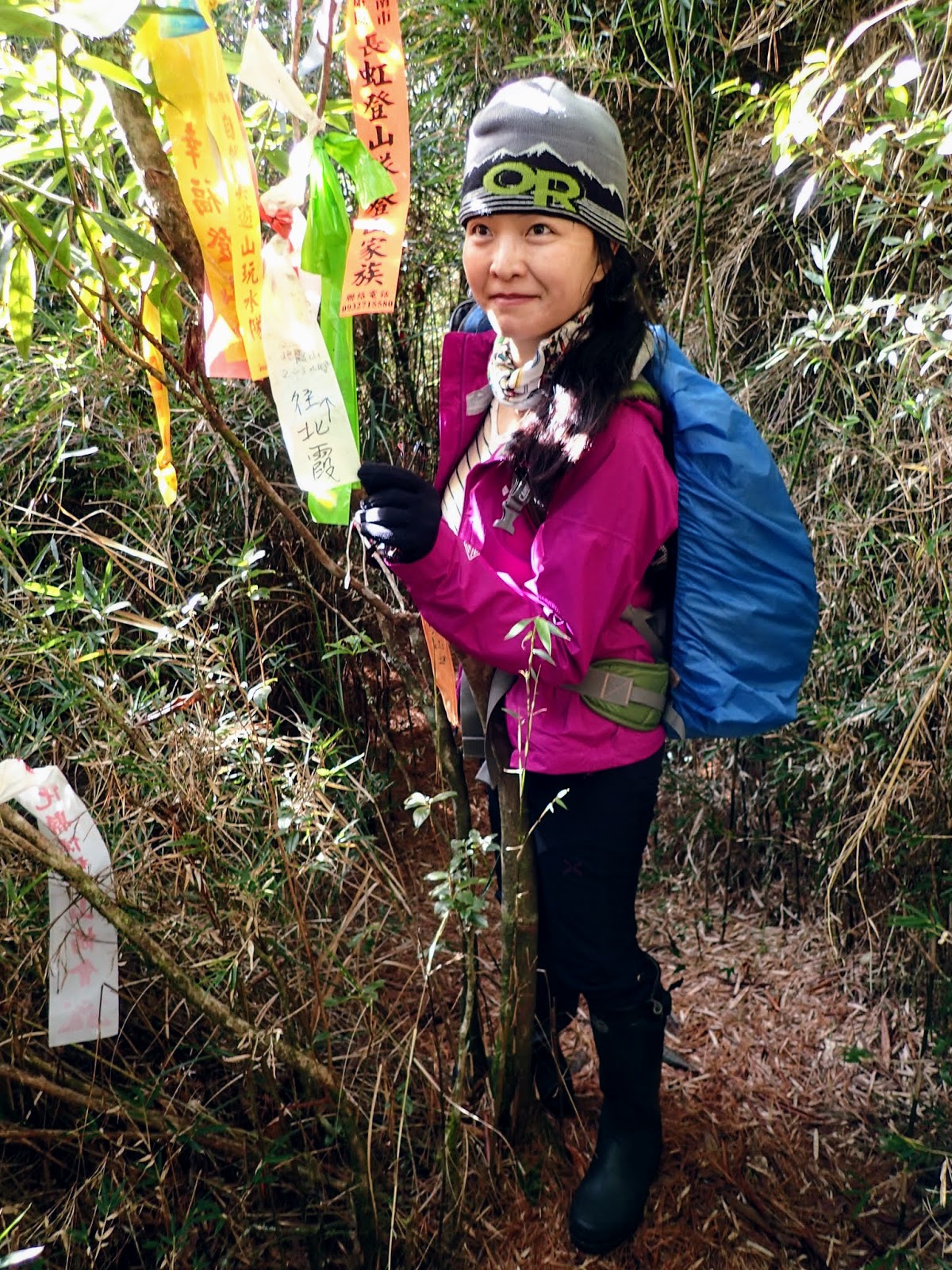 12:07 來到5.7K處, 路標後面山徑入口綁很多彩色布條是梯子板山的登山口, 說來回要40分鐘, 怕來不及2:00回到特富野入口, 決定放棄