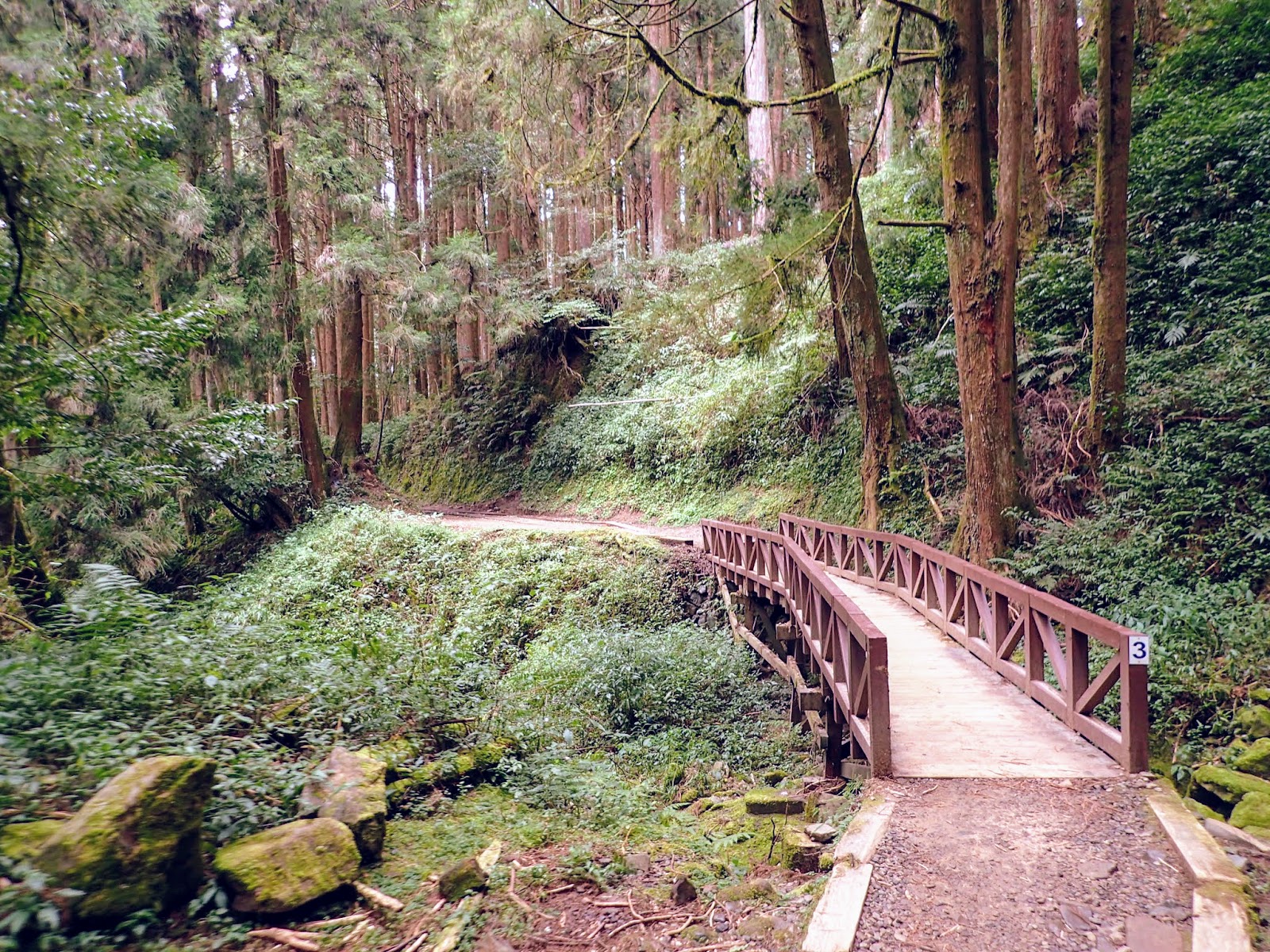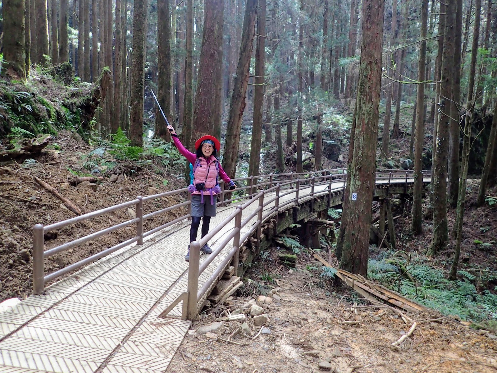 5:00 起床, 5:30吃早餐, 6:00從奮起湖民宿出發, 7:10來到特富野古道入口, 讓大家拍照看日出, 自由活動