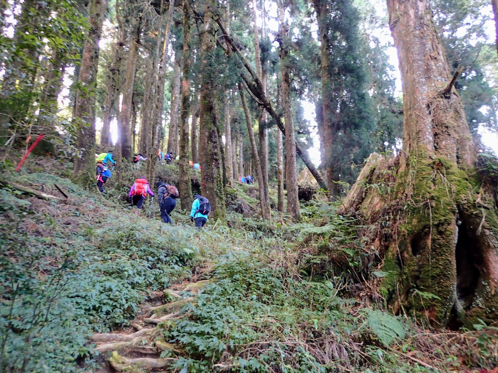 回程遇到爬完梯子板山的山友陸續下來