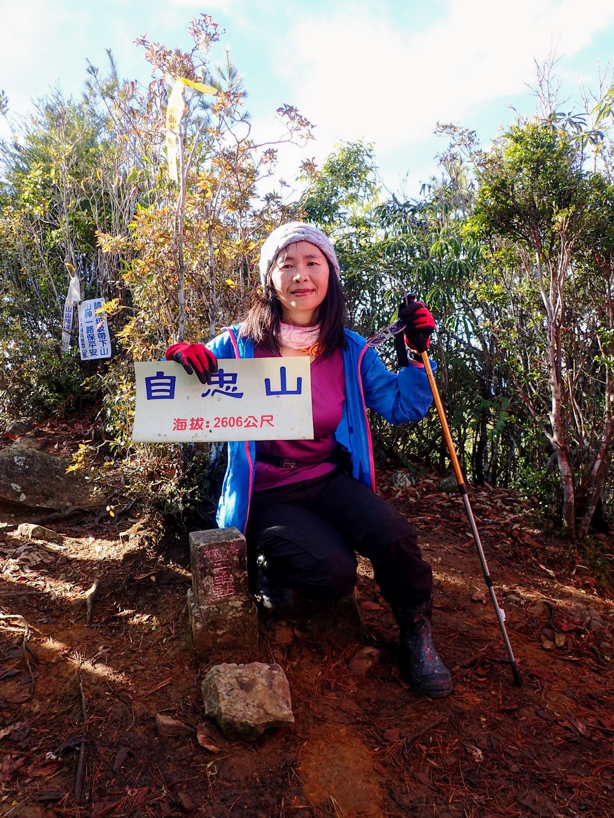 8:54 登頂自忠山, 海拔2606公尺, 立山字森林三角點及官有林境界標基石各乙座