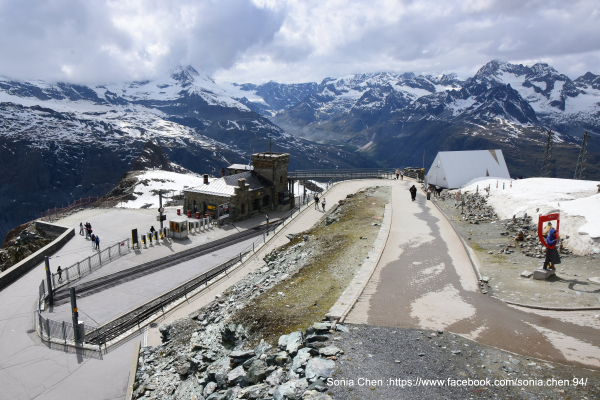 從策馬特搭乘登山 火車蜿蜒上行,抵達標高3030公尺的Gornergrat車站,