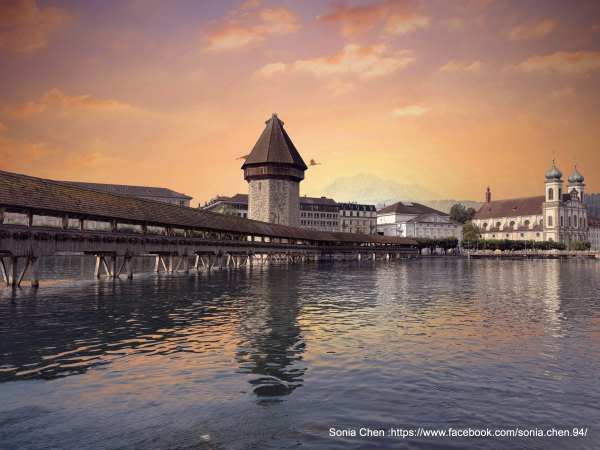 這條廊橋是歐洲現存最古老的木橋,是琉森的地標,