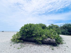悠閒鐵馬行進中,我觀察到豐富的濱海植物,如濱刺麥、林投與海茄苳,這些適應鹽分與強風環境的植物展現出生命的韌性。遠處沙丘緩緩起伏,搭配藍天與翠綠林蔭,讓我不禁讚嘆台灣濱海地理的多樣與美麗。