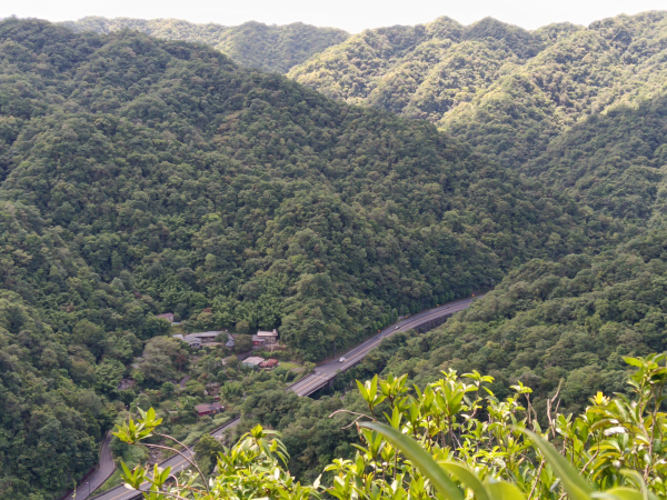 稜線上俯瞰底下的台2丙線及平湖大厝。每次從雙溪柑腳過來總會仰望平湖山這道岩壁,知道有登山路徑上來但是久無人走雜草掩徑,今天終於爬上來了。