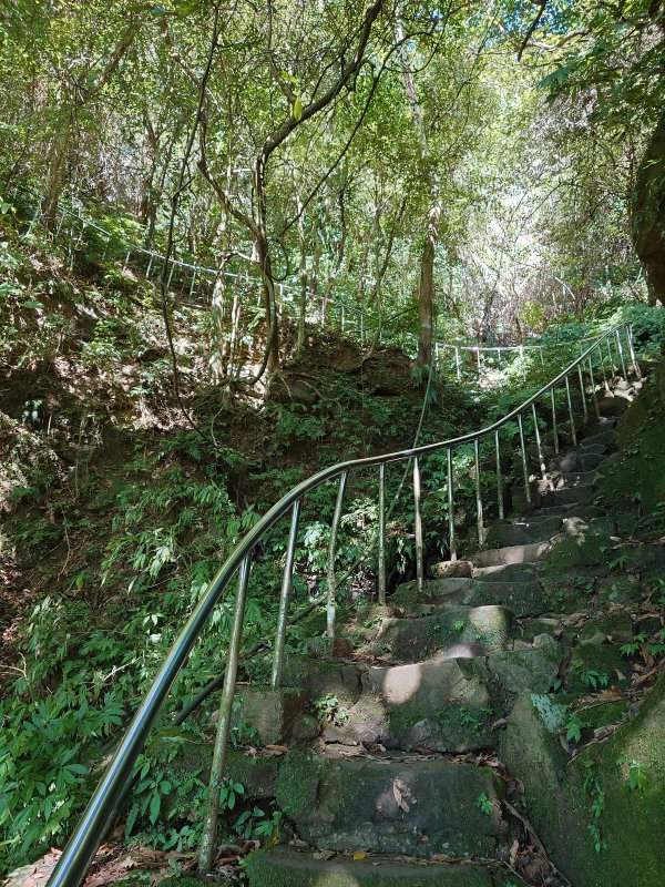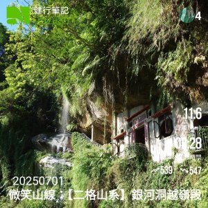 20250701,健行筆記微笑山線開跑,由於地利之便,所以選擇先走銀河洞,這條路線走了好幾次,所以路線熟得很。 先去小七添恩門市買幾瓶水,開啟任務,進入北政國中旁邊的指南溪畔步道,(步道在北政國中校門左手邊,有階梯進入步道),走約10分鐘,即可看到一條步道,不過沒名字,我稱政大後山步道。