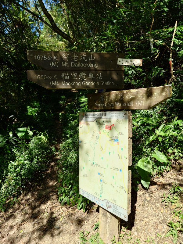 這隻指示牌後面的步道,往四面頭山,原始步道,會走到貓空彩虹階梯和鵝角格山交叉點,不太好走,考驗體力。 我走過 。