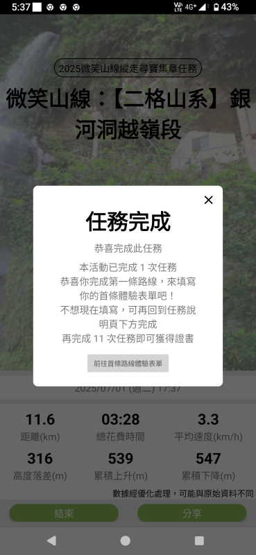 從北政國中開始走,到收到第一顆寶石,大概走了6公里,花了1小時又20分鐘左右。