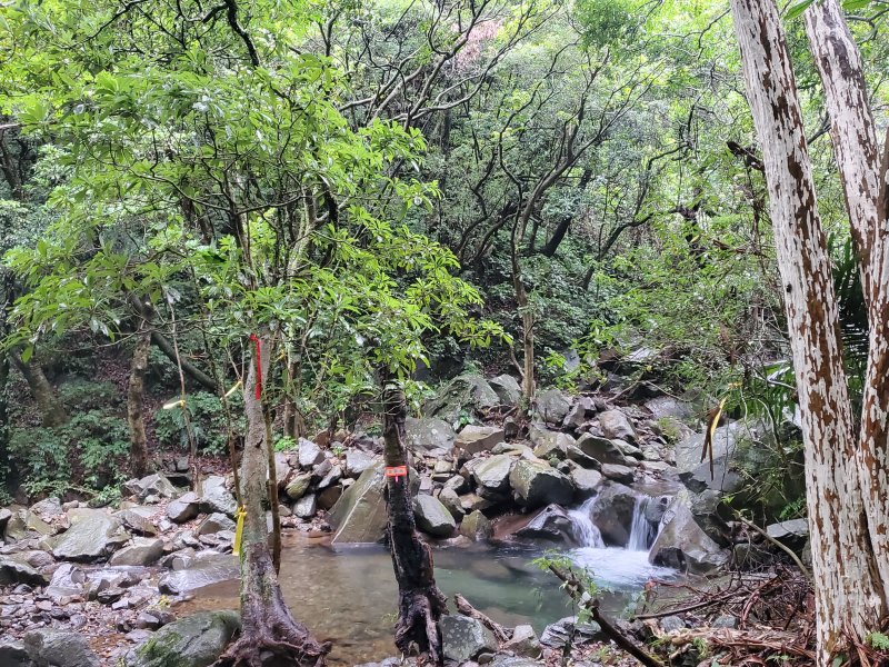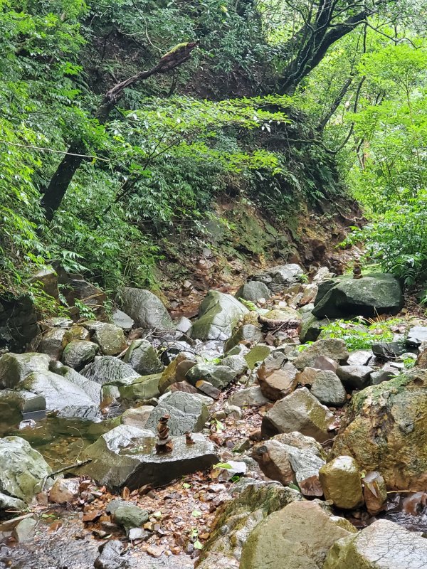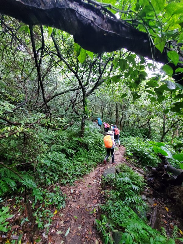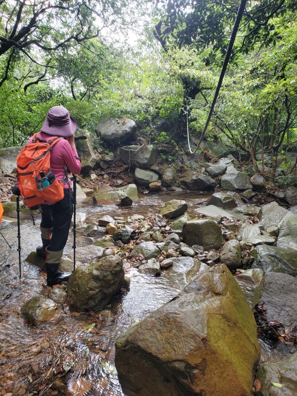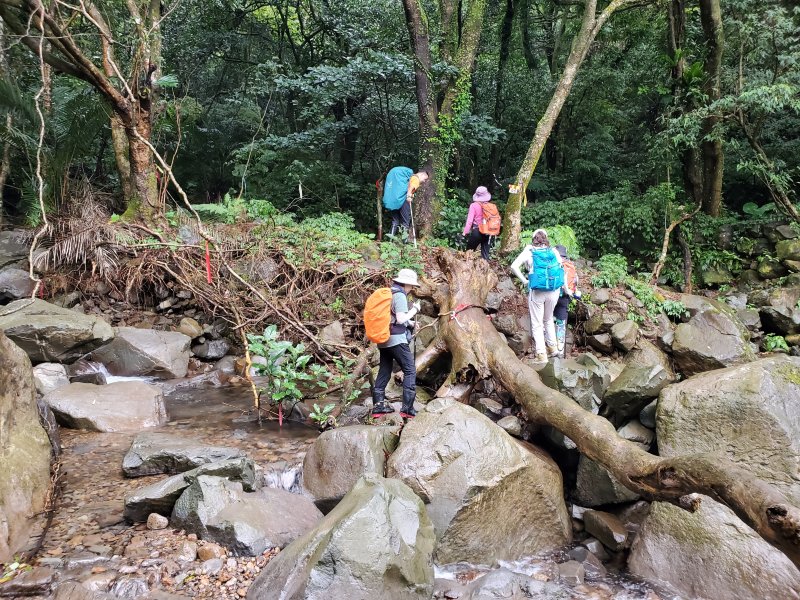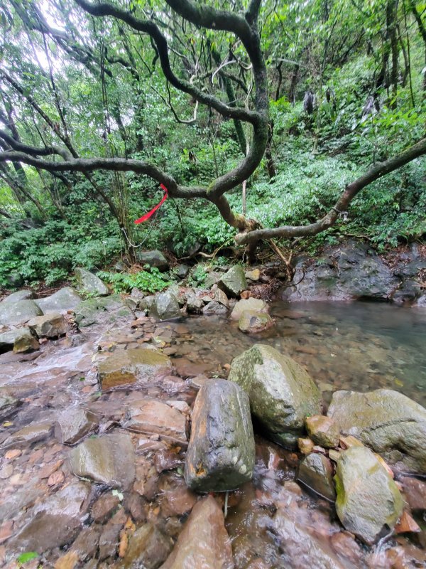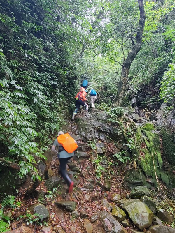 大屯溪古道雨中行(原路來回) Betty Shen 2025-07-09 發表 594 次點閱 8 次拍手 拍個手吧 收藏 檢舉 分享 分享至 Facebook LINE 一日行程 出發日期 2025/07/09 回程日期 2025/07/09 相關路線 大屯溪古道 本文為網友的心得,以下內容不代表健行筆記立場。 Day 1 2025/07/09 07:57 三板橋,先在此集合(旁邊有公廁) 08:20 古厝旁停車 08:21 古道路口 08:29 雨中行 08:34 由此去 08:35 崩塌 08:36 過崩塌處 08:38 恩愛樹 08:42 上坡各憑本事 08:48 崩塌處 08:52 觀音石,六字真言 08:52 許願池 09:00 千秋池 09:07 小水瀑 09:08 秋海棠 09:19 有山友被蜂螫,起了尋麻疹,撤退是唯一選擇 09:34 金童嶺叉 09:36 金龍池 09:39 防迷1 09:48 對面的稜線,今天天氣上去也是一片白牆吧! 09:51 過溪 09:54 菁礐池 09:55 清風崙叉今天天氣就不適合去了 10:02 過溪 10:04 過溪 10:05 水池 10:07 仙女池 10:58 桶湖一瀑 11:05 金孔 11:06 疊石指路 11:07 最後的上坡 11:07 金孔 11:15 防迷3,雨中特訓在此折返 11:16 九頭獅子草 11:17 翠綠 11:21 回程 11:23 疊石指路 11:25 水珠 11:38 過溪還在講電話 11:40 過溪 11:47 石砌寮舍 11:47 菁礐池 12:08 九芎 12:13 菇 12:27 回程 14:10 驅車前往午餐 15:53 軌跡