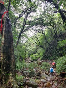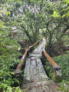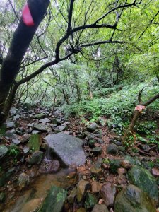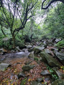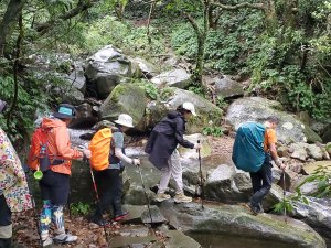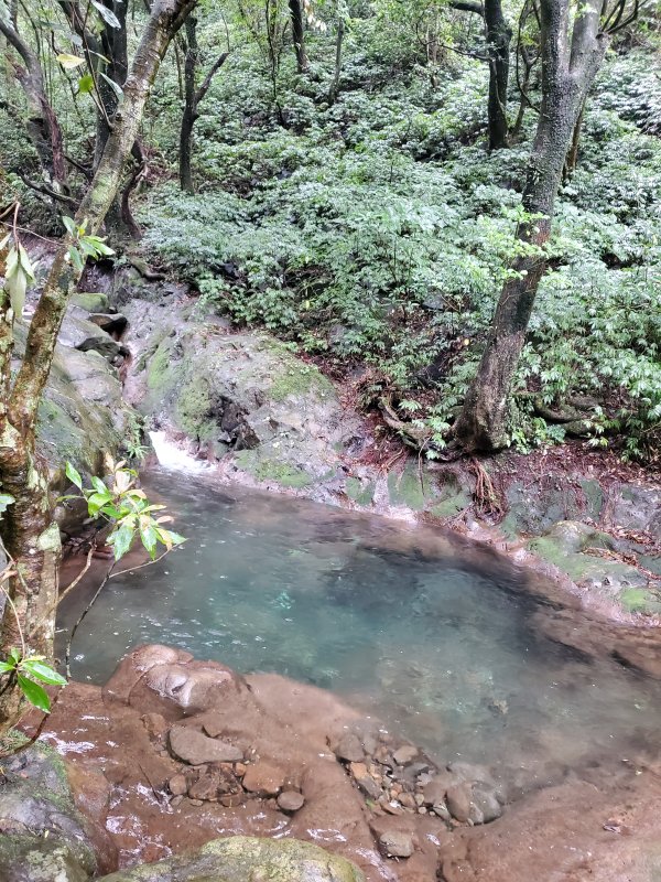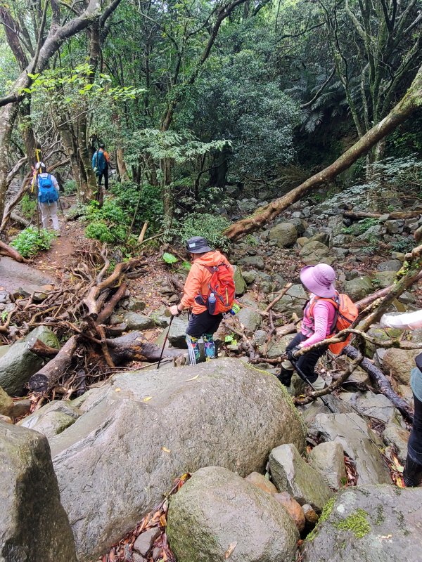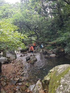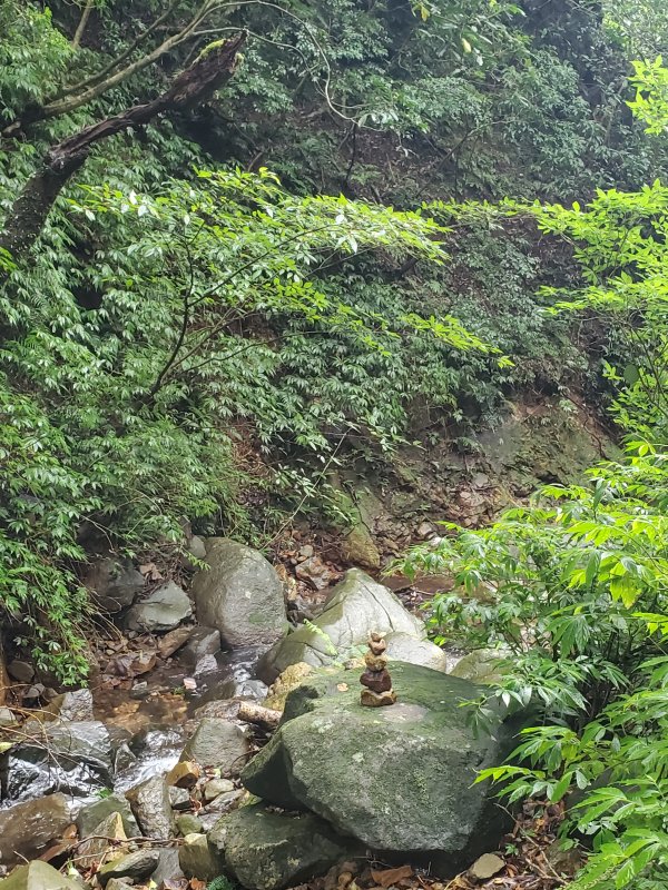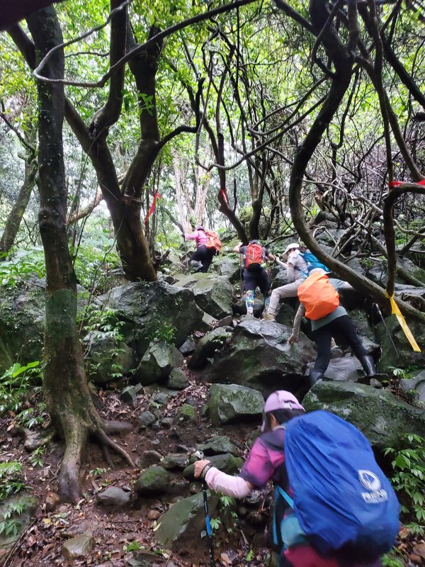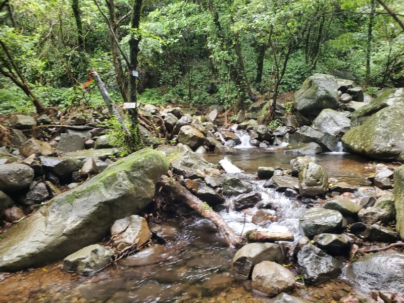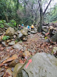 大屯溪古道雨中行(原路來回) Betty Shen 2025-07-09 發表 594 次點閱 8 次拍手 拍個手吧 收藏 檢舉 分享 分享至 Facebook LINE 一日行程 出發日期 2025/07/09 回程日期 2025/07/09 相關路線 大屯溪古道 本文為網友的心得,以下內容不代表健行筆記立場。 Day 1 2025/07/09 07:57 三板橋,先在此集合(旁邊有公廁) 08:20 古厝旁停車 08:21 古道路口 08:29 雨中行 08:34 由此去 08:35 崩塌 08:36 過崩塌處 08:38 恩愛樹 08:42 上坡各憑本事 08:48 崩塌處 08:52 觀音石,六字真言 08:52 許願池 09:00 千秋池 09:07 小水瀑 09:08 秋海棠 09:19 有山友被蜂螫,起了尋麻疹,撤退是唯一選擇 09:34 金童嶺叉 09:36 金龍池 09:39 防迷1 09:48 對面的稜線,今天天氣上去也是一片白牆吧! 09:51 過溪 09:54 菁礐池 09:55 清風崙叉今天天氣就不適合去了 10:02 過溪 10:04 過溪 10:05 水池 10:07 仙女池 10:58 桶湖一瀑 11:05 金孔 11:06 疊石指路 11:07 最後的上坡 11:07 金孔 11:15 防迷3,雨中特訓在此折返 11:16 九頭獅子草 11:17 翠綠 11:21 回程 11:23 疊石指路 11:25 水珠 11:38 過溪還在講電話 11:40 過溪 11:47 石砌寮舍 11:47 菁礐池 12:08 九芎 12:13 菇 12:27 回程 14:10 驅車前往午餐 15:53 軌跡