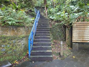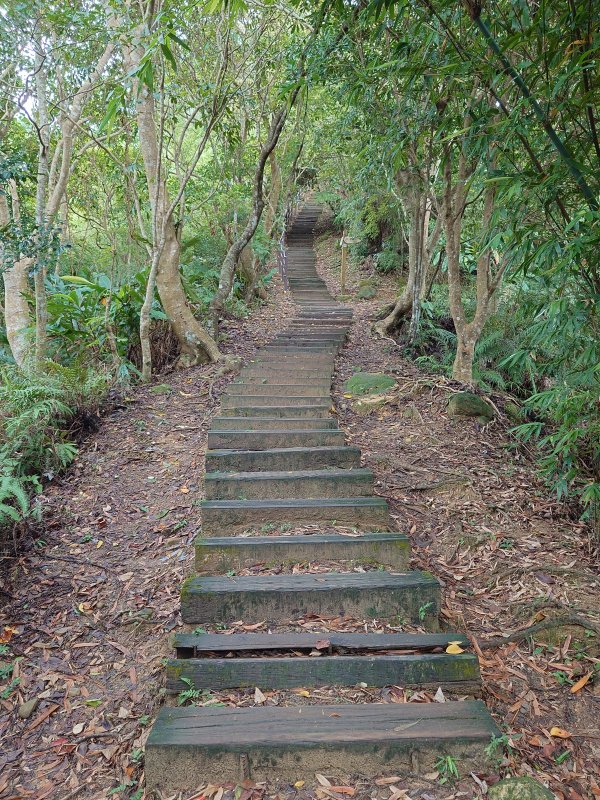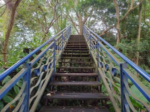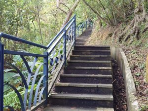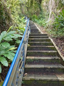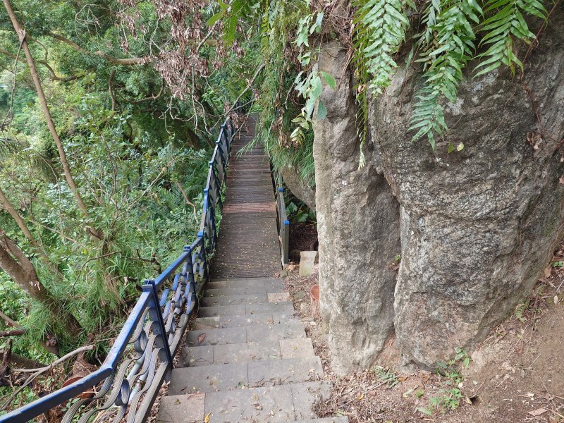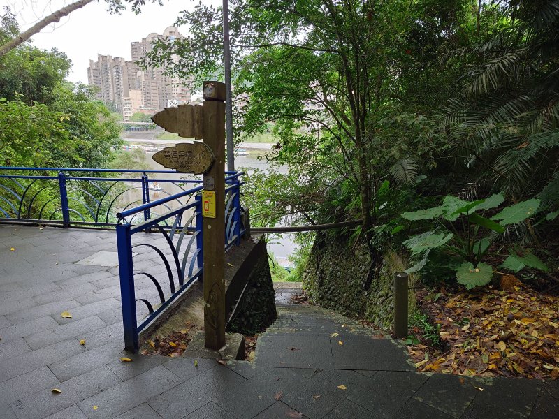 走過碧潭吊橋,登山口在吊橋左手邊,解說牌的後面,一開始就是一條長長且有點陰暗的階梯,走進去就對了。