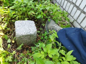 (礁溪)莿子崙莊~1(基石在墓塔後方的雜草叢中,靠近牆邊)