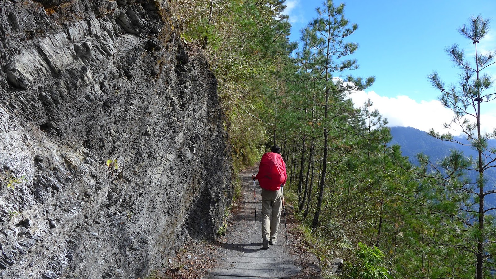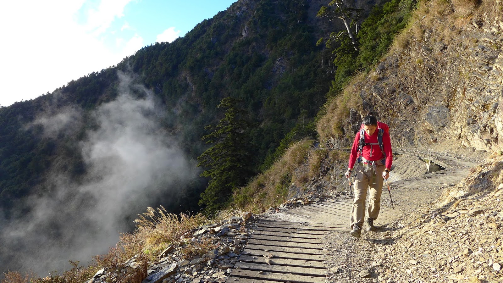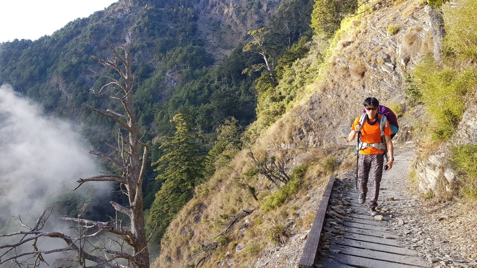 這一小段凱雲剛走過去沒多久就聽到有石頭在滾的聲音,沒一會噴下幾顆棒球大小的石頭,叫凱雲趕快加速,我們後面等一下確定沒在掉落石頭後趕緊快步通過。