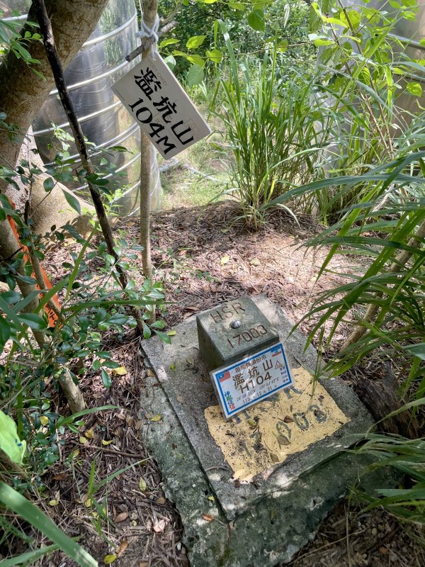 叉路再往上0.5k可順撿「濫坑山」,要抵三角點前看到三個大水塔,再小爬一個鋁梯上去