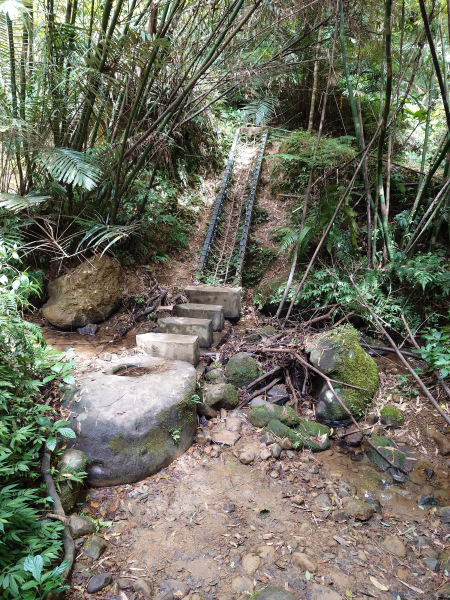 過繩梯,走一小段木階梯,就接到望古瀑布步道,往右下就是望古瀑布。不過我沒下去,因為下面有一團旅行團在拍照。