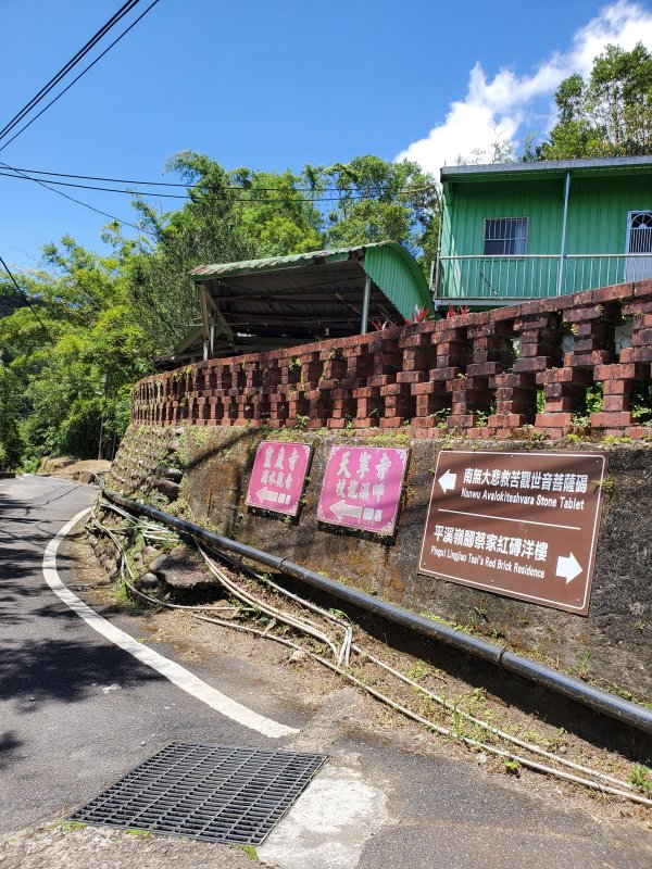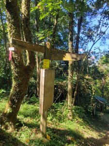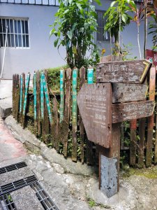 步道解說牌,在此接山徑