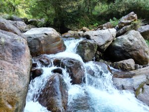 深入支線,景觀更見原始:青苔滿佈的巨石、錯落的倒木與雜木林,營造出野趣。途中還能見到天然岩洞「水濂洞」,過去曾有瀑布傾瀉而下,如今雖因溪流改道而消逝,但岩壁仍留有壯麗的痕跡,讓人遙想當年的壯觀。