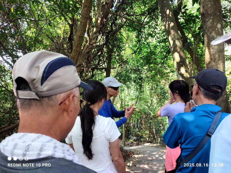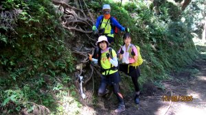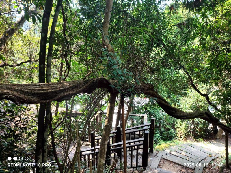 師風隊爬郊山好夥伴(老童鞋) -老郭,不時爬郊山鍛鍊,未曾爬過中級山。此趟難度低,特邀他來朝聖~共聽日月,同逍遙! 年前療養腳傷,尚未痊癒? 上爬不久,身體便出現不適,得知他近2個月疏於山訓(原想告假)。