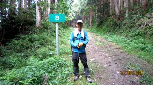 營地循水塔旁山徑上行,約20分鐘直抵羅山林道8K處。取里程牌旁的油羅山第3登山口,拉繩上爬。