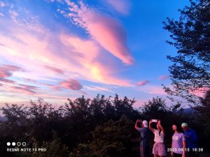 轉瞬間,漫天彩霞不停地璀璨變幻,唯美浪漫。令夥伴們讚嘆不已,直呼幸運! 趕緊擺拍搶拍!