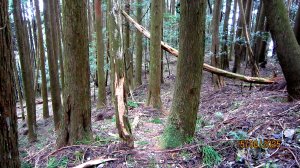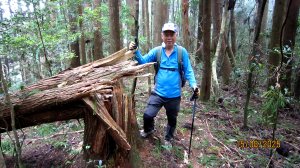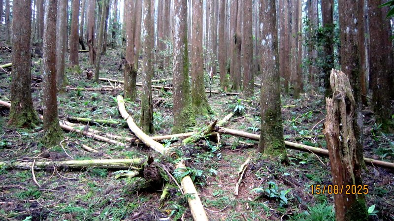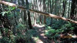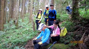 13:30 如時原路下撤。走到往主峰、3、4方向三分叉路口,往3登山口方向下行。途中欣見老郭剛穿越過遼闊倒木區,意志堅定地緩步上行。於是黃表哥+北雁折返陪他走(其他夥伴先下撤,打理露營事宜)。
